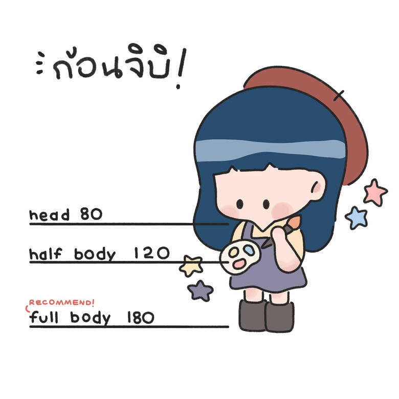 ราคาขึ้นอยู่กับรายละเอียดของงาน จะอิงจากจำนวนตัวละคร, สัตว์, ของเล็กน้อย